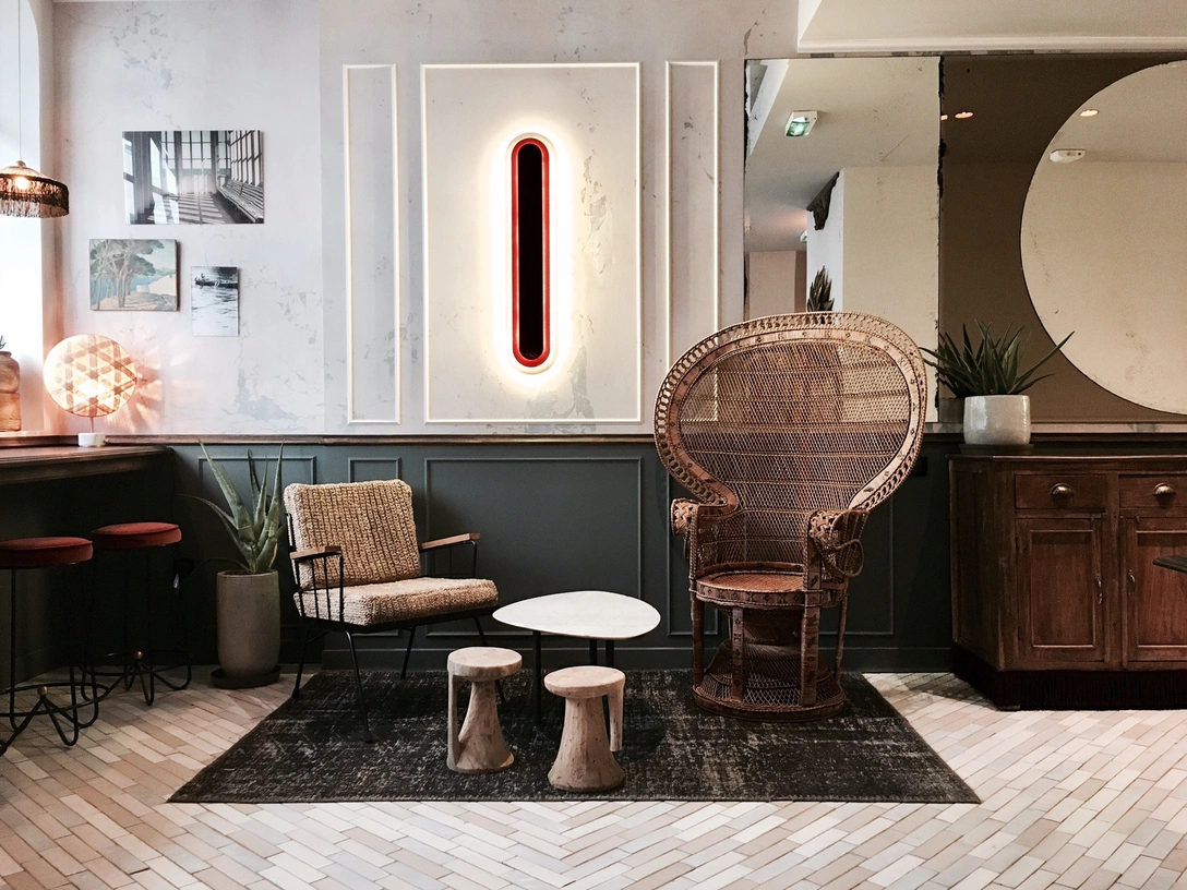 Дизайн отеля отразил дух космополитичного квартала Бельвиль, где на одной улице соседствуют шумные бары, кошерные пиццерии и французские рестораны. В интерьерах La Planque — не менее эклектичный и изящный микс антикварной мебели, светильников в духе 1930-х и модных современных деталей и текстур. «Мы стараемся создавать атмосферные и интерьеры с индивидуальностью, которые не потеряют шарм и красоту с течением времени», — говорит Дороти Делай (Dorothée Delaye), соосновательница студии Desjeaux Delaye.