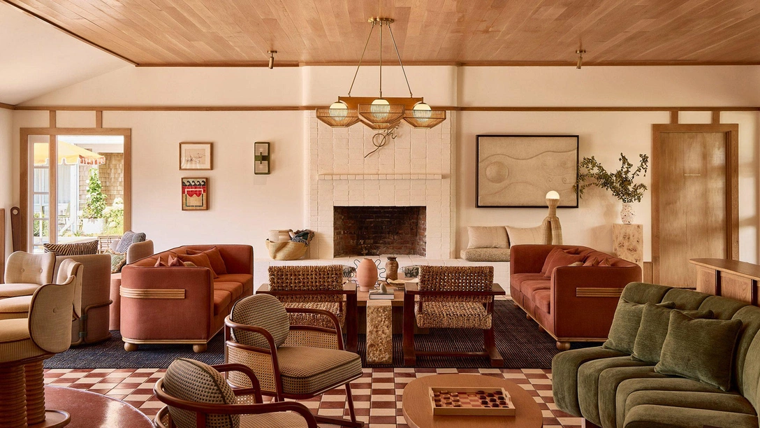 Команда хотела создать современный дизайн, который отражал бы эстетику 1960-1970-х. Интерьеры оформлены в кремовых, терракотовых и темно-зеленых тонах, сочетающихся с оттенками натурального дерева. Мягкие текстуры создают уютную атмосферу с ноткой ностальгии.