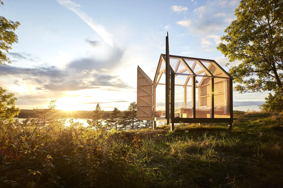 Эта миниатюрная хижина стоит на берегу озера, окруженная лесом, на востоке Швеции. Деревянная конструкция с прозрачными стенами напоминает нарисованный ребенком домик, который предлагает гостям замедлиться и слиться с природой на следующие 72 часа, чтобы избавиться от накопленного напряжения. Отдельно предусмотрен павильон с кухней и санузлами, рассчитанный на пять таких домов, расположенных на расстоянии друг от друга.