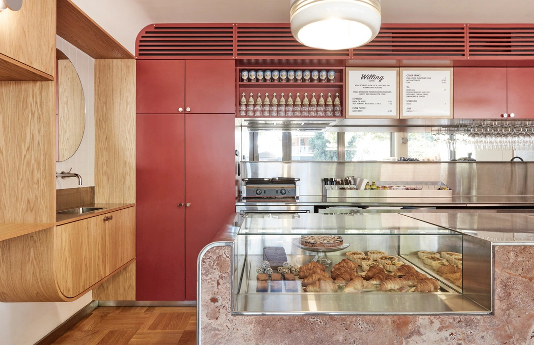 Небольшая кофейня Willing Coffее в австралийском городе Перт открылась недавно, но уже завоевала популярность не только у местных жителей, но и у крупнейших дизайн-порталов. Заведение принадлежит Тиму Уиллингу (Tim Willing), в прошлом чемпиону по трековым велогонкам, а ее запоминающийся интерьер создала местная студия Ohlo Studio, черпавшая вдохновение в классических итальянских бистро средины прошлого века и дизайне mid-century.