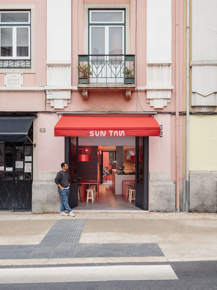 Ресторан азиатской кухни Sun Tan, оформленный студией DC.AD и дизайнером Марианой Перальтой (Mariana Peralta), располагается на первом этаже 1930-х годов в стиле ар-деко. Внешний фасад, облицованный красным кирпичом, команда оставила нетронутым, а внутреннее пространство наполнила смелым сочетанием оттенков красного, розового и белого.