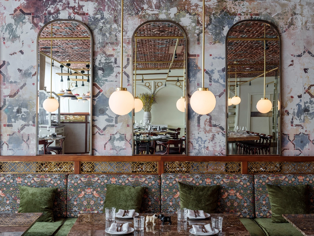 «Диваны различной формы формируют места как для больших, так и для маленьких компаний — пространство разделено на множество зон, где люди видят друг друга, но сохраняется приватность. Такие „кабинки“ словно обволакивают вас теплыми тканями и разноцветными подушками», — говорит архитектор.