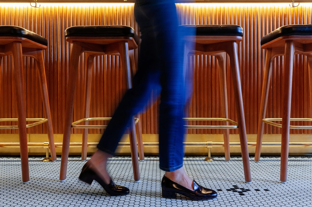 «Еще на входе в ресторан, который расположен в старинном кирпичном здании с причудливой архитектурой, вы попадаете в эклектичную по своему содержанию, но элегантную обстановку в духе колониальной архитектуры, воссозданной, в частности, благодаря керамическим изделиям и узорам в перанаканском стиле, — говорит дизайнер. — Чуть дальше в центре зала расположена трехъярусная островная барная стойка, скульптурный дизайн и золотисто-розовый цвет медных элементов которой перекликаются с нежно-розовым цветом коктейля „Сингапурский слинг“».