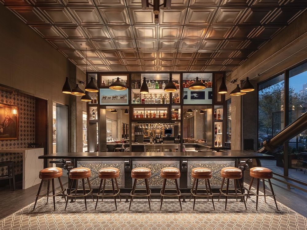 Одна из стен — полностью стеклянная, что лишь усиливает эффект: за окном — современный американский мегаполис XIX века, внутри — английское заведение середины XX века с добротной мебелью, портретами на стенах (не хватает лишь портрета Ее Величества при параде) и настоящим британским духом.