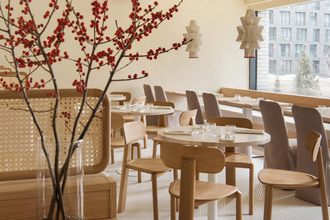 Отдельное внимание дизайнеры уделили освещению. Теплый свет встречает гостей от входа, приглашая пройти вглубь заведения, задержаться у бара или сесть к столикам. Декоративные панно на стене антресоли подсвечены светильниками с мягким равномерным светом. Поверхность столиков выделяет узкий круглый луч, создавая для сидящих камерную, душевную атмосферу, которую еще более усиливают настольные лампы Setago по дизайну Хайме Айона.