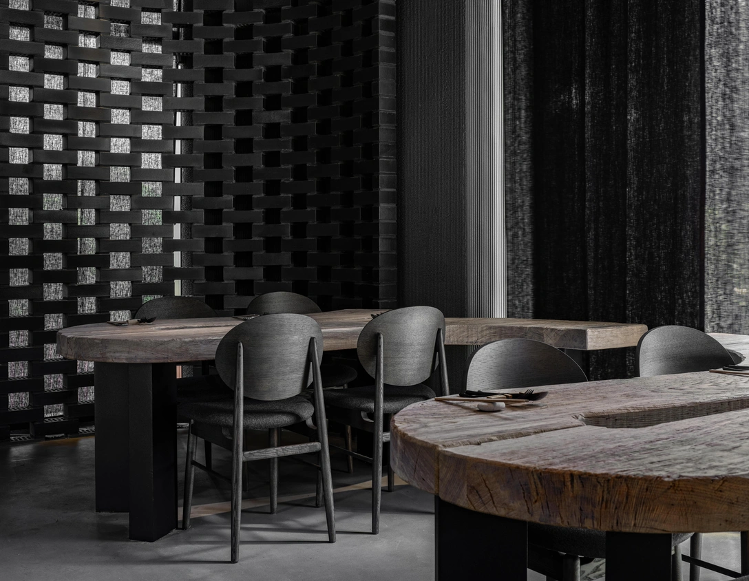 Локация и направление кухни подсказали концепцию — провинциальная японская деревня, которая соседствует тут с кипящей эстетикой мегаполиса. Архитекторы бережно отнеслись к азиатским традициям и традиционным для японской культуры текстурам, совмещая их с новыми материалами.