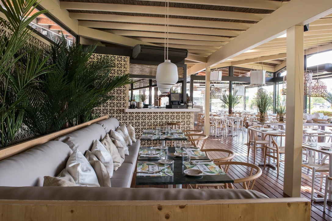 После реновации интерьер стал более современным и молодежным, внутри появилась детская комната, а снаружи — открытая веранда с мягкой мебелью, коктейль-баром и легкими закусками. Ресторан рассчитан на 250 мест. В нем несколько залов. Один — просторный, светлый и воздушный, отделанный деревянными панелями с ажурной резьбой и украшенный живыми растениями. Второй — более темный, тихий и небольшой, — идеально подходит для романтического ужина при свечах. И, наконец, на первом этаже есть также VIP-зал, предназначенный для закрытых мероприятий.