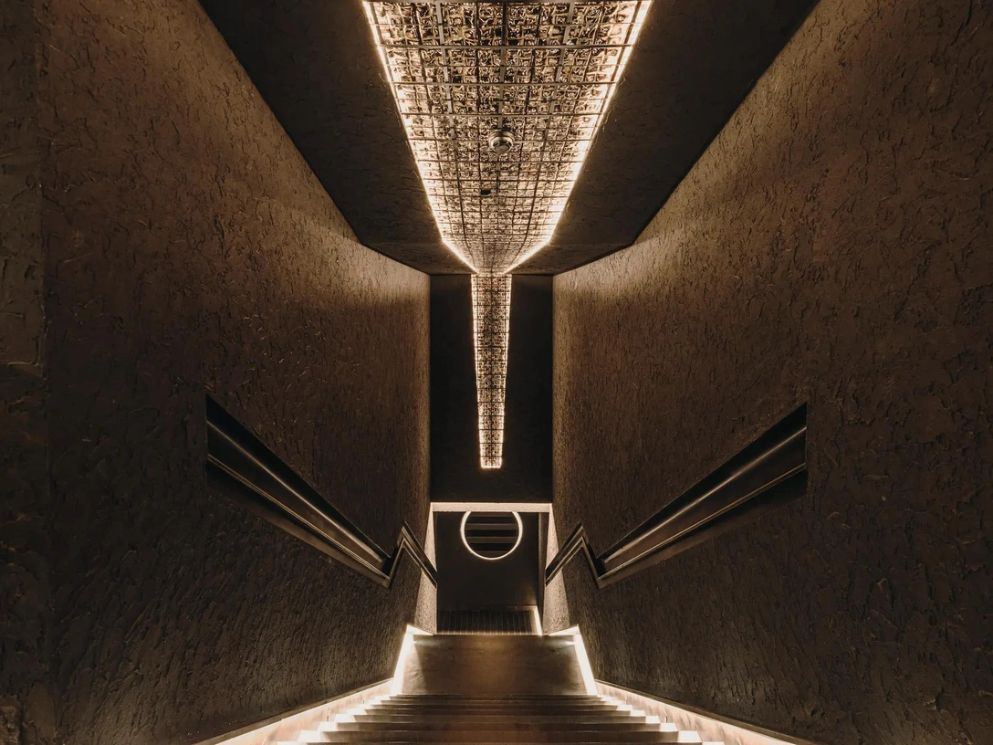 Коридоры со стенами угольного цвета, скульптурные черные двери, темный кирпич и люстры, похожие на лавовые шары — по замыслу студии Astet новый ресторан Smoked Room в Мадриде напоминает недра вулкана. Он расположен в отеле Hyatt Regency Hesperia и рассчитан всего на 14 посетителей.