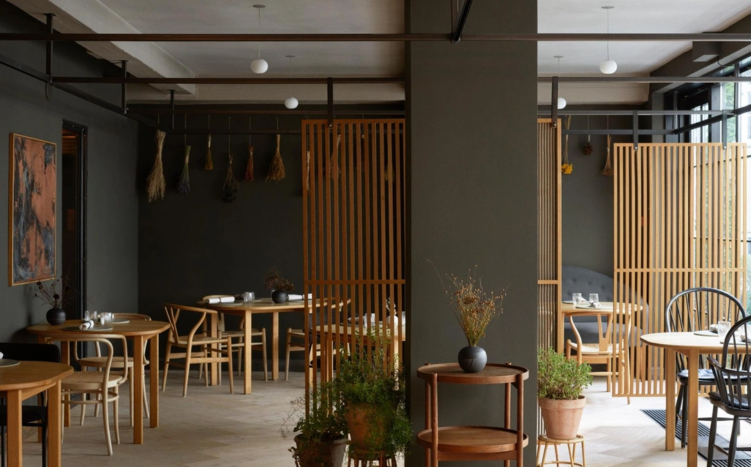 Студия OEO Studio разработала изначальный дизайн ресторана Kadeau, когда он открылся еще в 2015 году. Новый интерьер команда выдержала в том же стиле, но постаралась создать более теплую атмосферу, сочетая темно-серые и красные оттенки с терракотой, латунью и дубом. «Первоначальный проект был именно таким, как мы планировали, но всегда есть вещи, которые можно сделать лучше. Когда позвонил шеф-повар Николай Норрегаард, я подумал, что сейчас самое время сделать обстановку в Kadeau еще более выразительной и гостеприимной», — рассказывает соучредитель студия Томас Ликке (Thomas Lykke).