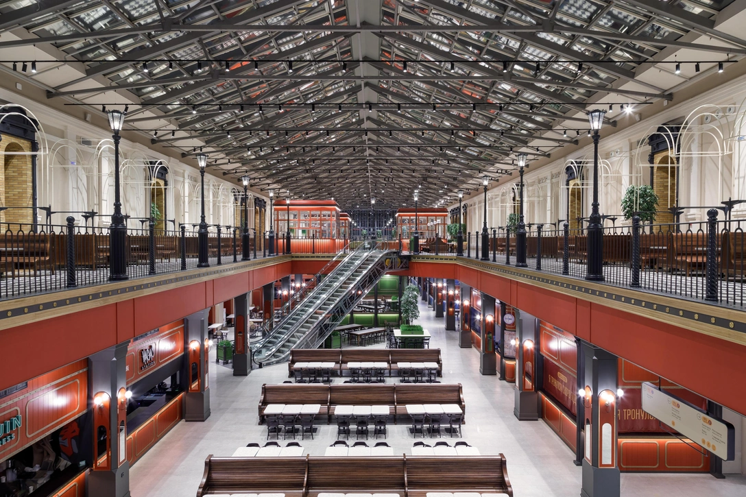 Главной задачей Meltzer Group было создать интерьеры, соответствующие архитектуре XIX века, и в то же время сделать пространство функциональными и комфортными для посетителей фудмолла.