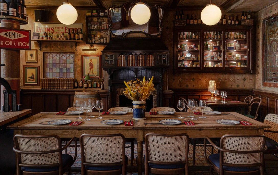 Основная идея проекта: антикварная английская бакалейная лавка с вином, коктейлями и вкусной едой.
