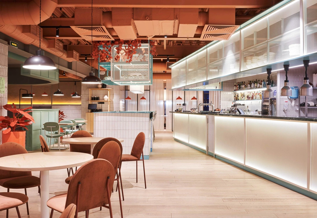 «Pan Am! — дневной ресторан, и демократичность места подчеркнута сочетанием классических и хорошо знакомых приемов с яркими эксцентричными деталями», — рассказывают дизайнеры студии MODGI Group.