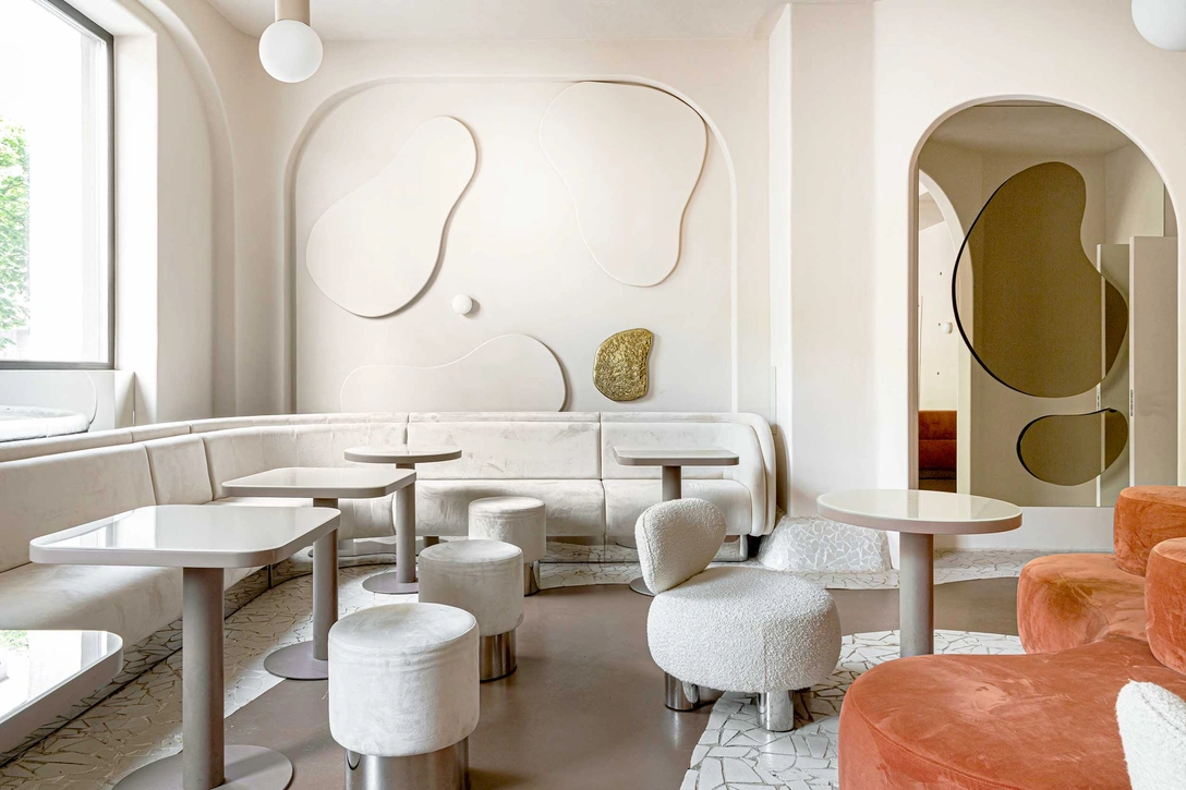 «Кондитерская Mousse находится практически в спальном районе, поэтому нашей главной задачей было создать эффектное пространство, контрастирующее с окружающей архитектурой. Отправной точкой проекта стало название заведения. Мы сразу представили себе нежный шоколадный десерт, который тает во рту. Чтобы передать это ощущение, мы сделали ставку на светлую цветовую гамму и мягкие, округлые формы», — рассказывают Феликс Дзеранов и Кристина Артюшевская.