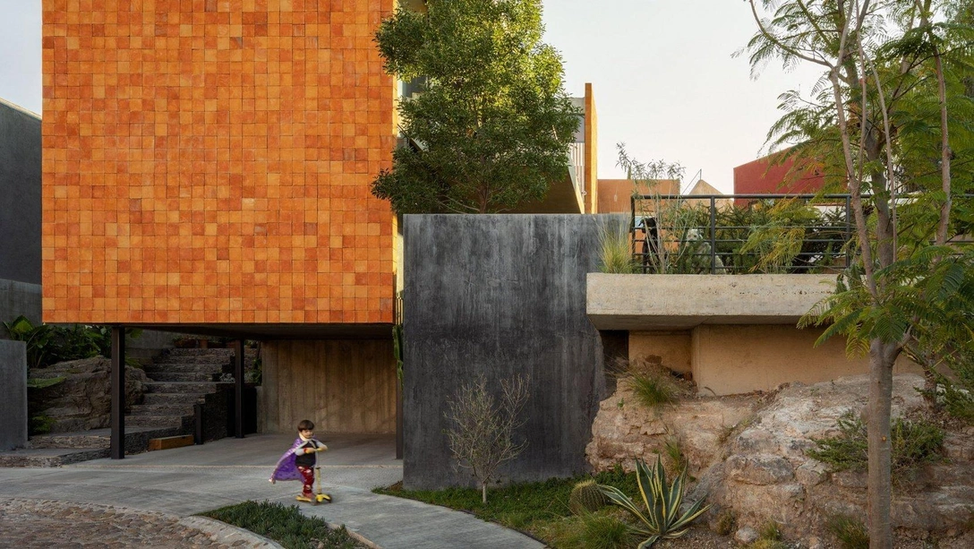 Мексиканский архитектор Маурисио Алонсо (Mauricio Alonso) из бюро aquitecturA построил дом в городке Сан-Мигель-де-Альенде, известным колониальной архитектурой в стиле барокко. Без сложностей в работе не обошлось: место для стройки находилось в плотно заселенном районе на неудобном по форме участке с сильным уклоном. Чтобы разместить постройку нужной площади, архитектор спроектировал двухэтажное консольное здание, которое обращено к оживленной улице глухим фасадом, а окна комнат выходят во внутренний сад.