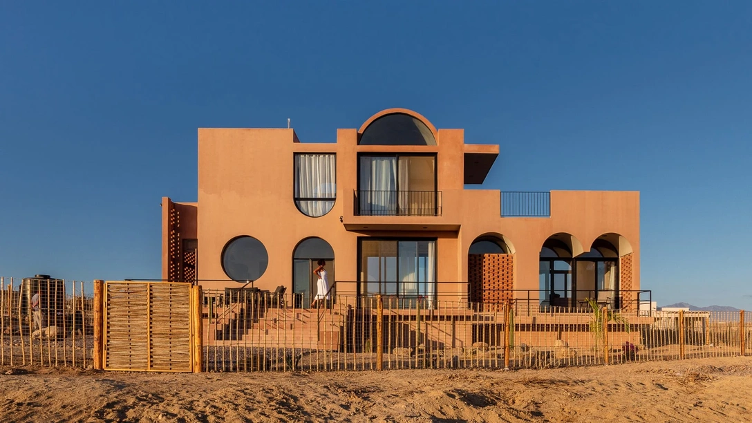 Дом площадью 200 квадратных метров расположен в небольшом мексиканском городке Тодос-Сантосе на побережье Тихого океана и принадлежит американской паре, которая приезжает сюда отдыхать. Проект дома, порученный студии RED Arquitectos, получил название Casa Calafia в честь королевы из местной легенды. Она на протяжении веков считалась покровителем региона и дала свое имя современному полуострову Калифорния.