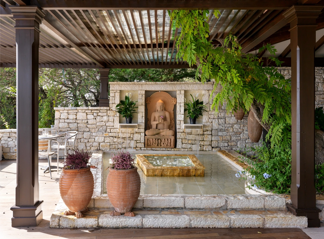Заказчик оказался большим поклонником отдыха на курортах Юго-Восточной Азии. Он сразу решил отказаться от традиционного для Греции средиземноморского стиля и привнести в проект азиатский колорит, который бы передавал атмосферу его любимой Индонезии и Мальдив.