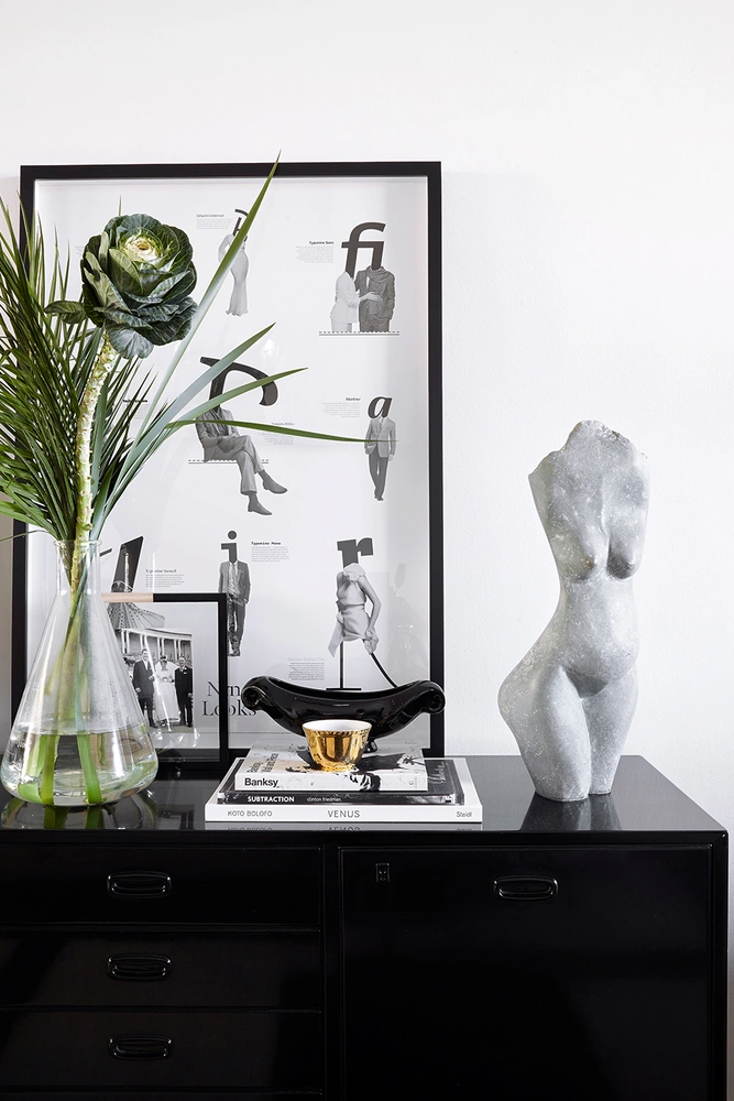 Межкомнатные двери из стекла и металла, с одной стороны, разбивают помещение на приватные зоны, а с другой — оставляют ощущение открытого пространства. «Я бы сказала, что они как знаки пунктуации в одном большом предложении интерьера», — говорит Санет. Небольшие размеры комнат не остановили хозяйку от покупки массивных предметов мебели, как, например, стола с тяжелой бетонной столешницей или антик-варной кровати из металла.