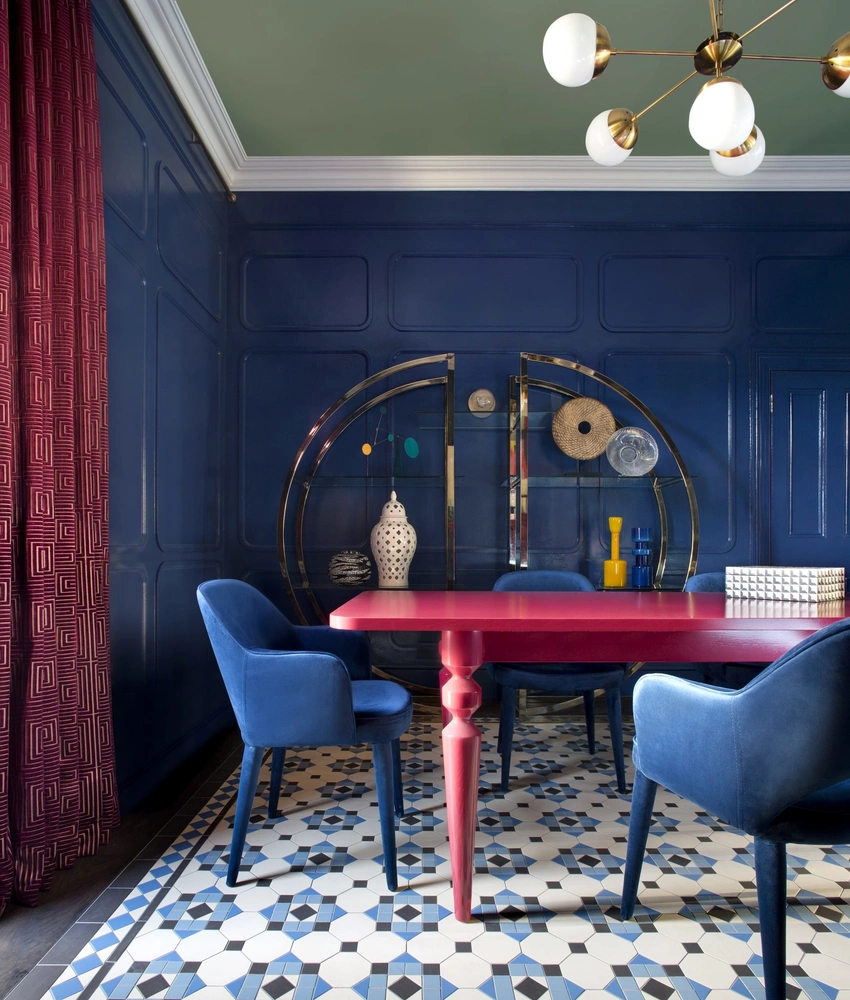 Дизайнеры из Kingston Lafferty Design предпочитают дерзкие и яркие цвета и нестандартные сочетания, как и их клиенты. Выбранная палитра во многом была продиктована коллекцией вещей, привезенных хозяевами из путешествий, и произведений искусства. Самой спокойной по гамме получилась в этом доме, пожалуй, только спальня, но и там нашлось место гладкому велюру, блестящему золоту, керамике и другим фактурным отделкам, которые делают интерьер еще красочнее и богаче.