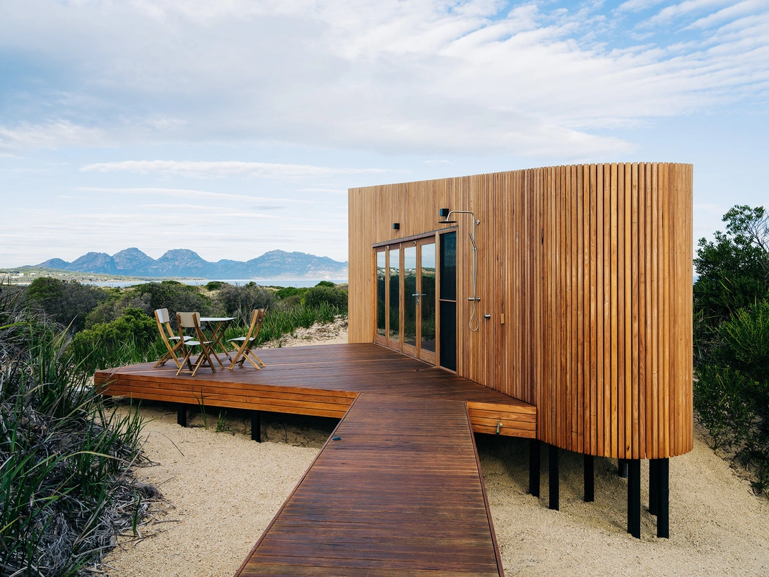 На австралийском острове Тасмания, который известен своей уникальной природой, сохранившейся с доисторических времен, появился необычный дом. Он стоит на берегу океана среди песчаных дюн и принадлежит молодой паре, которая давно мечтала о своем «острове свободы» вдали от больших городов. Маленькую одноэтажную постройку, стоящую на металлических сваях, спроектировала для них австралийская студия Matt Williams Architects. Ее площадь — всего 36 кв. метров.