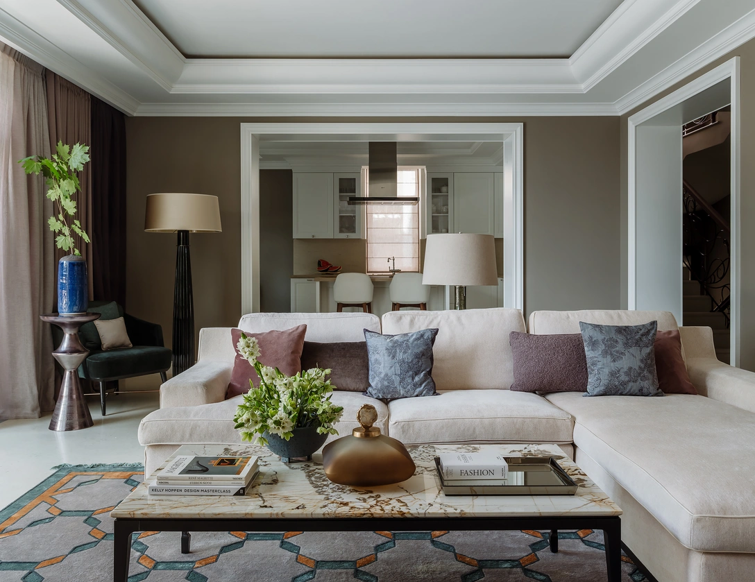 Заказчики, молодая семья с ребенком, уже работали ранее с архитектурно-дизайнерским бюро Zenzerosso. Екатерина Яблокова и Наталья Михалевская оформляли для них московскую квартиру, которая полностью выполнена в современной стилистике. Для загородного дома их хотелось чего-то другого: чтобы дом получился светлым, уютным, комфортным, гостеприимным, располагающим к отдыху и наслаждению природой, и чтобы каждый, кто в него входил, чувствовал это с самого порога. Чтобы передать эту атмосферу, хозяева и дизайнеры выбрали стиль «современная классика».