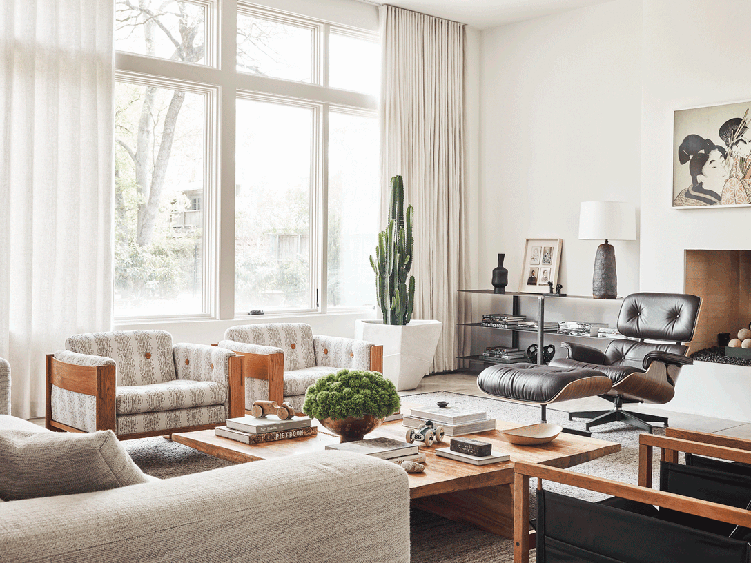 Многие предметы обстановки Чад привез с собой и отреставрировал сам. Например, пару черных кресел, расположившихся в гостиной, архитектору подарил его дядя 30 лет назад. Буфет Herman Miller в столовой был частью гарнитура, подаренного Чаду родителями, когда он учился в колледже. Деревянный журнальный столик он купил на распродаже выставочных образцов 15 лет назад. Большая трещина по центру столешницы делает его уникальным.