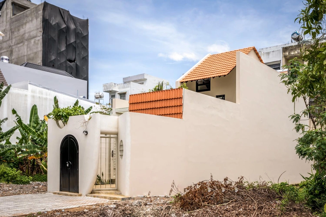 В быстрорастущих городах не всегда получается найти удобное место для дома. Так получилось и во вьетнамском городе Кантхо, где архитекторам Da Vàng Studio достался в работу узкий и вытянутый участок (4,5 х 23 м). Им нужно было выбирать: создать полноценный дом или уменьшить размеры жилья, чтобы хватило место и для сада. Решением стали внутренние сады, которые разместили на террасах и прямо в комнатах. Пока растения и деревья небольшие, но вскоре разрастутся, и дом превратиться в природный оазис среди шумного города.