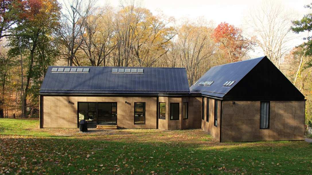 Прежде на месте этого дома на севере штата Нью-Йорк стояло другое здание 1937 года постройки. Архитектор Нейт Далесио (Nate Dalesio) его снес, но не полностью: следуя принципам устойчивого развития, он сохранил старый фундамент и уже на нем построил новое здание, отделав фасады панелями из пробкового дерева. Пробка выбрана неслучайно. Это бюджетный и экологичный материал, который помогает снизить потребление энергии и легко перерабатывается.