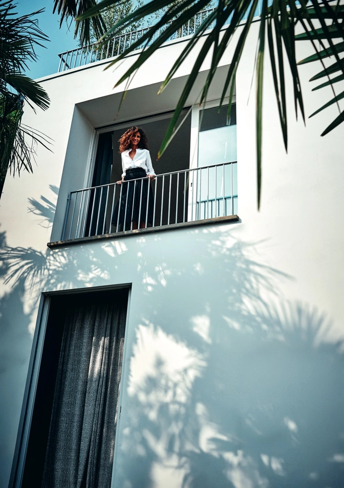 Абсолютно белый дом пятидесятых годов постройки заставил Катерину Фабрицио (Caterina Fabrizio) вернуться в места своего детства — на озеро Комо. «Это была любовь с первого взгляда, — вспоминает хозяйка. — После долгих лет в Милане я и представить себе не могла, что снова смогу жить на озере. Но этот дом, угнездившийся на холме Брунате, запал мне в душу. Мерно раскачивающиеся на фоне белоснежного фасада пальмы навеяли мечты о новом образе жизни, где я свободно отпускаю детей гулять, как это бывает только в маленьких городах, а каждый день наполнен ощущением покоя и воли».