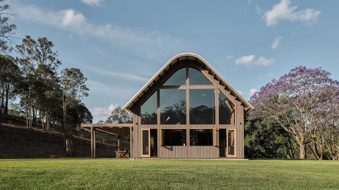 Дом стоит в предместье австралийского города Брисбена, в городке Пулленвейл и находится в полной гармонии с окружающей природой: благодаря панорамному остеклению, пространство наполнено светом, а из окон открывается живописный вид на окружающую природу, фасад облицован прочным материалом — австралийской лиственницей, а покатая крыша из алюминия спроектирована в нарочито грубом, промышленном стиле.