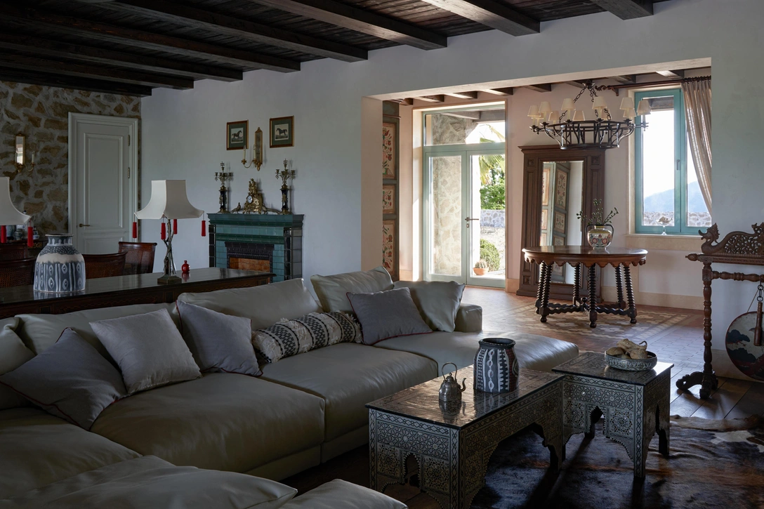 «Большая часть мебели была привезена из Америки, Италии и Англии. Некоторые предметы изготавливались на заказ по моим эскизам. Особого внимания заслуживает шкаф в холле: украшенный росписью по средневековым мотивам и девизом семьи, он стал настоящим талисман дома».