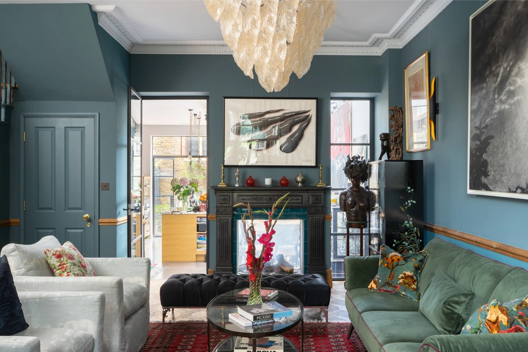 Дом построен в 1890-х годах, и мы хотели сохранить верность поздней Викторианской эпохе и в то же время поиграть с дихотомией жизни и отдать должное прогрессу. Таким образом, переднюю часть дома оформили с отсылкой к викторианским традициям. Вентиляционные решетки смоделировали по образцу каменного декора церкви Святого Михаила, аутентичные чугунные колонны для кухни привезли из Испании. Но в оформлении верхних этажей и подвала мы решили себя не сдерживать. Мы оба любим ар-деко, не особенно популярное в Англии, и в полной мере наигрались с ним, создавая роскошную атмосферу медиазала. Он кажется очень небританским, но отражает наш космополитизм. Чердак с великолепным видом на Лондон — наш гостевой оазис. Здесь царят насыщенные оттенки: темно-синие, почти черные стены, обои с яркими принтами и блеск латунных деталей.