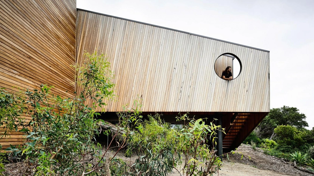 Этот летний дом стоит практически на пляже недалеко от Сэнди-Пойнт, небольшого прибрежного городка в трех часах езды от Мельбурна, и изящно вписан в окружающую природу. Архитекторы местного бюро Kennedy Nolan Architects выбрали для него простую геометрическую форму, обшили фасады светлыми досками, напоминающими по цвету местный песок, и спланировали внутреннее пространство с учетом пожеланий владельцев — они просили создать уединенные зоны для всех членов семьи.