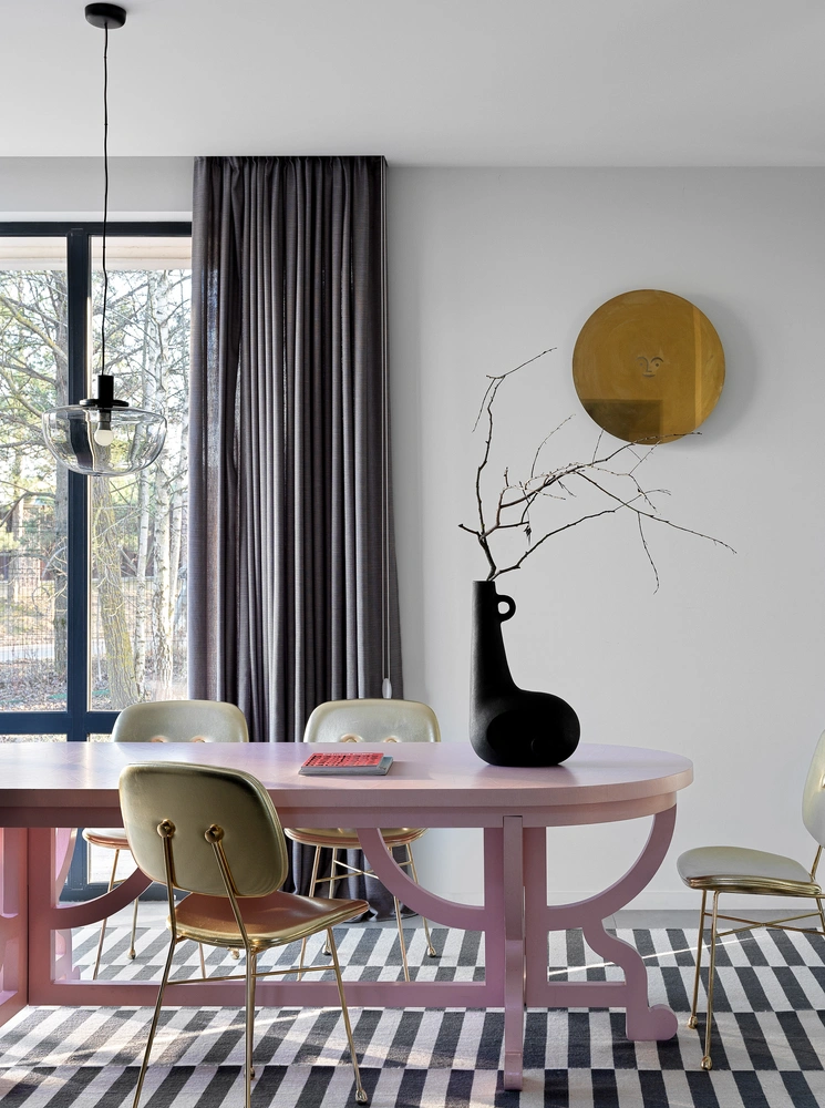 Больше всего здесь работ Марселя Вандерса. Мне повезло, я знакома с ним лично, бывала в его мастерской, на голландском дизайне проходило мое становление как декоратора. Хотя первым появился в доме овальный розовый стол дизайна Studio Job — я люблю его за цвет и фактуру. Он выполнен в технике папье-маше, невероятно теплый и торжественный, он стал предметом всеобщего обожания и отправной точкой в интерьере гостиной. Стол собран без единого болта и шурупа. Еще мы сами отреставрировали винтажный буфет, привезенный из Дании и покрыли его краской Little Greene.