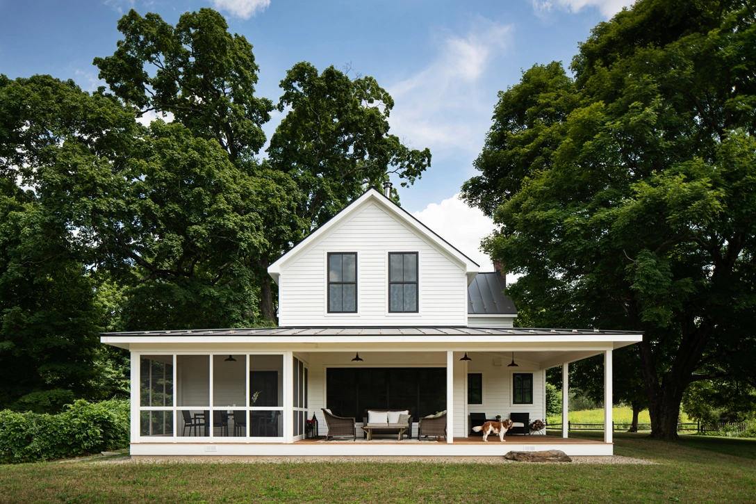 Двухсотлетний фермерский дом в Датчессе, округе штата Нью-Йорк, выглядел как почтенный старец, который изо всех старается держать прямую спину, но возраст проступал из каждой детали. «Стоило нам снять сайдинг, вскрыть полы и внимательно взглянуть на перекрытия, как стало понятно, что они буквально молят о помощи, — говорит архитектор Джилл Портер. — Стены просели, полы прогнулись, крышу требовалось укрепить, а старомодная темная отделка интерьеров, которая в свое время, вероятно, создавала уютную атмосферу для тихих зимних вечеров, никак не подходила для летнего отдыха. А именно с этой целью здание планировали использовать его владельцы — семья Александры и Брайана Тартов».