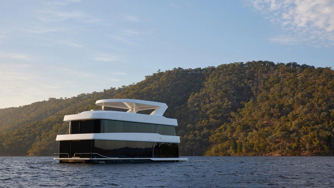 На озере Эйлдон в австралийском штате Виктория можно встретить немало плавучих домов. Для местных жителей это вполне обычный тип жилья. Дизайнеры студии Jolson Architecture and Interiors решили немного «осовременить» эту традицию и спроектировали ультрамодный плавучий дом Halcyon в духе актуальных тенденций в архитектуре. Они вдохновлялись динамичными линиями яхт и катеров и органическими архитектурными формами. Обтекаемая скульптурная форма Halcyon дополнена столь же необычной внутренней планировкой.