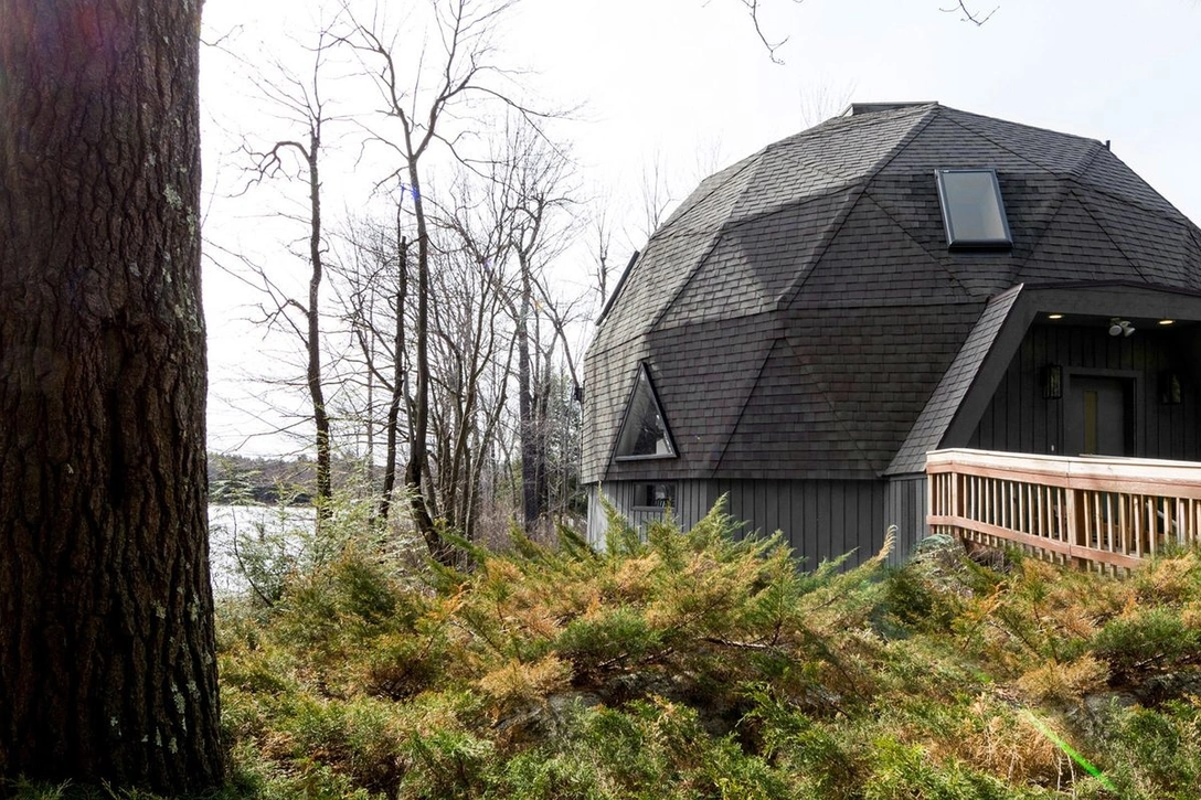 Геодезический купол придумал американский архитектор Ричард Бакминстер Фуллер (Richard Buckminster Fuller) еще в середине прошлого века. Эта необычная архитектурная форма с треугольными гранями принесла ему всемирную известность. Дом в Беркшир-Хиллс — более современная интерпретация конструкции Фуллера. Построенная в 1980-х годах, небольшая горная хижина стала любимым местом отдыха для пары из Бостона после реновации, проведенной Jess Cooney Interiors.