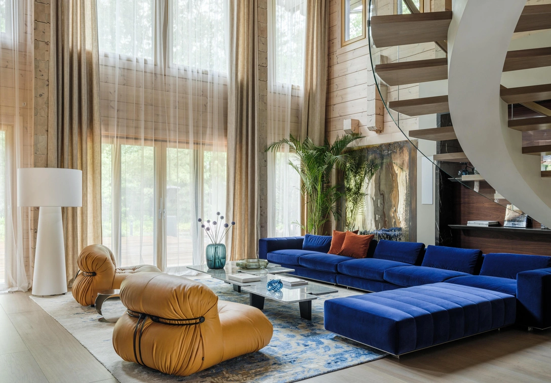 Этот дом, расположенный живописном месте с видом на Финский залив, был создан для молодой творческой семьи с двумя детьми. У проекта довольно интересная история. Изначально заказчики обратились к нам за дизайном интерьера для дома площадью 450 кв.м. Но вскоре после завершения проекта, они снова нам позвонили и сообщили, что купили дополнительную землю. Так, дом вырос до 1000 кв.м, и мы снова принялись за дело, удивляясь такому неожиданному повороту судьбы.