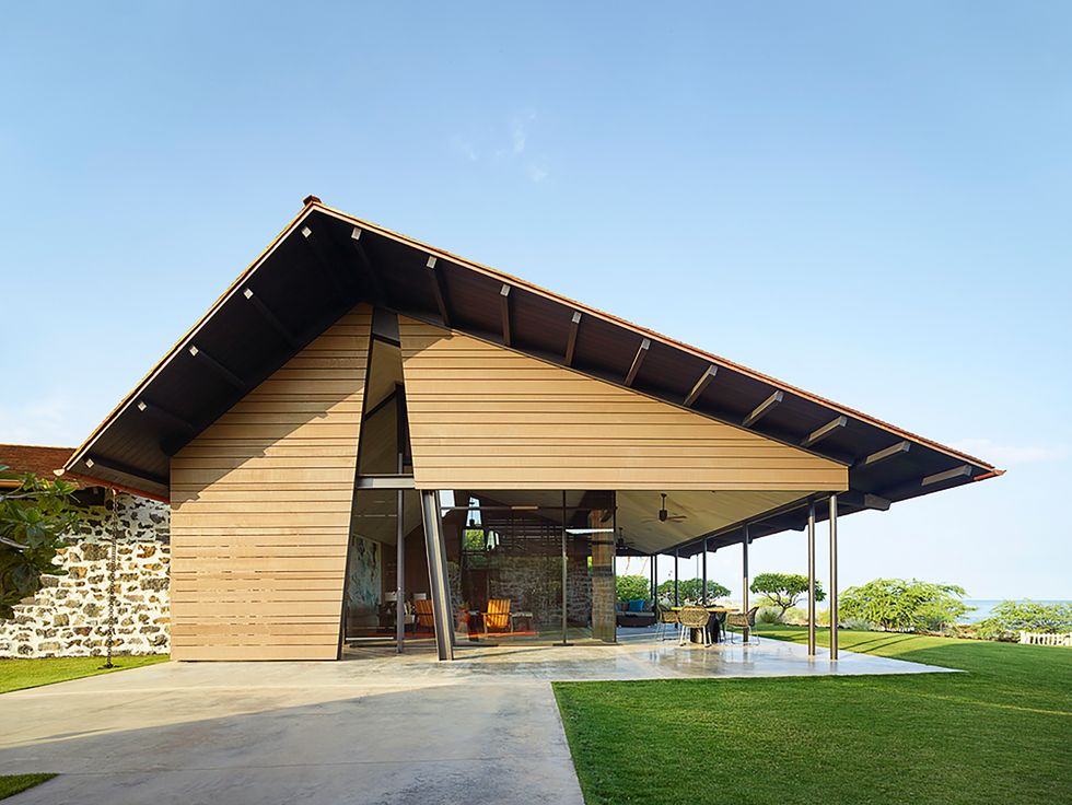 Главное здание ориентировано на океан, в то время как два домика для гостей и зоны отдыха скрыты от глаз во внутренней части. Грег Уорнер (Greg Warner), сооснователь архитектурной студии Warner Walker Architects, говорит, что, получив предложение построить здесь «семейный комплекс», сразу подумал об аутентичных деревнях полинезийцев, живших на Гавайских островах до появления европейцев.