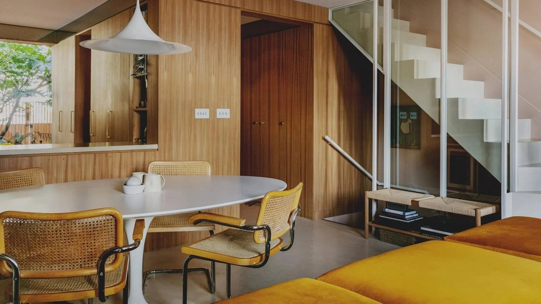 Хозяева этого таунхауса на севере Лондона — музыканты Бен Гарретт и Рэй Моррис, — начинали свою творческую карьеру в Лос-Анджелесе в 1970-е годы и сохранили много теплых воспоминаний о тех временах. В своем новом доме их хотелось воссоздать дух и атмосферу Калифорнии тех лет, поэтому они обратились к архитектурной студии Studio Hagen Hall, в проектах которой было много отсылок к американским 1970-м.