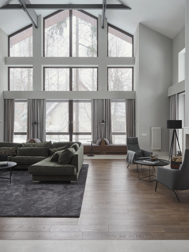 «Когда я познакомилась с этим объектом, все перегородки уже были возведены, — рассказывает дизайнер Татьяна Грицевская. — Строительство дома было заморожено на несколько лет. Вернувшись к реализации, заказчики обнаружили, что им больше не нравится первоначальный сложный интерьер c обилием блестящего камня. Он стал им казаться неактуальным. Поэтому основным пожеланием было сделать спокойный, нейтральный архитектурный интерьер с использованием только натуральных материалов в мебели и отделке, чтобы настроение в доме можно было легко менять с помощью мебели, текстиля и декора. Кроме этого, в семье четверо детей, поэтому все отделки проходили фильтр „устойчивости к маленьким детям“».