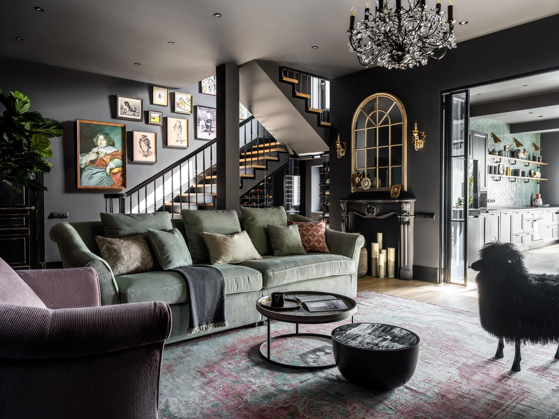Все началось с решения о строительстве пристройки к трехэтажному дому. Кухня-гостиная площадью 50 кв. метров в какой-то момент стала хозяевам тесновата, поэтому они решили перенести кухню и столовую в новое помещение, а гостиную расширить. Закончилось все это полной реконструкцией внутреннего пространства всего дома — заказчики поняли, что интерьер пора обновить.
