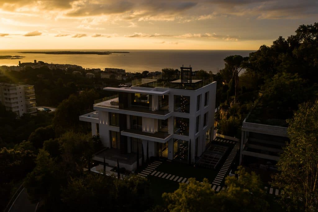 Villa Odaya — дом мечты на Лазурном берегу с видом на один из самых живописных его уголков: Канны и Леринские острова. Четырехэтажная вилла с 12 комнатами и 8 ванными комнатами рассчитана на прием 24 гостей и расположилась на зеленом холме, с которого открывается красивая панорама. Море с высоты видно, как на ладони, — и его синева нашла отражение в дизайне интерьеров, которыми занималась студия Humbert & Poyet.