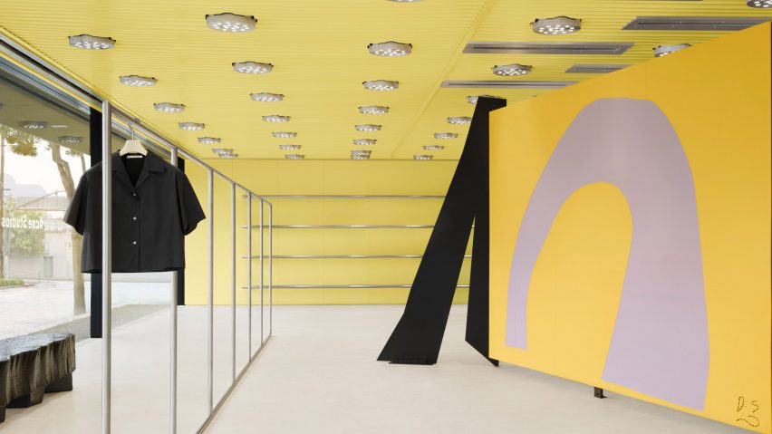 В фэшн-квартале Лос-Анджелеса на Мелроуз-авеню открылся новый магазин шведской марки Acne Studios. Интерьер, в полной мере отражающий эстетику бренда, разработало лондонское бюро Geoff Crowther Architects. Главный акцент архитекторы сделали на цвет — в этом пространстве доминирует модный желтый лимонный оттенок. В Acne его называют «pale acid». Этой краской покрашены все стены нового магазина и даже потолки.