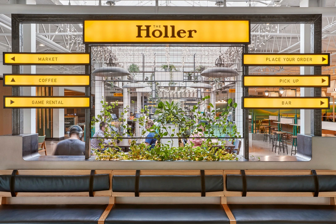 The Holler — новое мультифункциональное пространство, которое появилось не так давно в городке Бентонвилль, Арканзас, в здании бывшего пищевого комбината. Здесь разместился дизайнерский коворкинг, зал для игры в шаффлборд, магазины, бар и кафе, где можно пообедать или просто посидеть за столиком с ноутбуком и чашкой кофе.