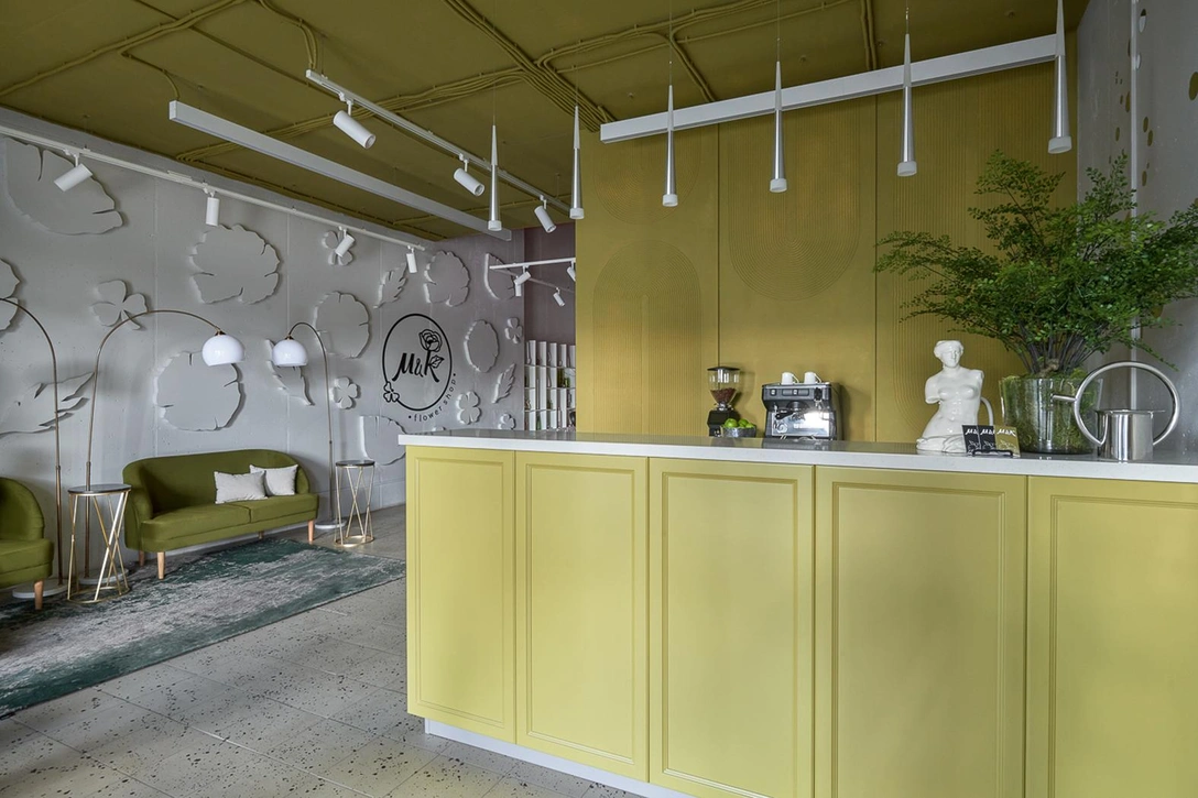 «В основу интерьерной концепции легло будущее название цветочного бутика „Мак и Клевер“. Цветовое решение и декоративные элементы мы разрабатывали, отталкиваясь от ассоциаций, которые вызывает каждое из растений», — рассказывает архитектор Анна Данилова.