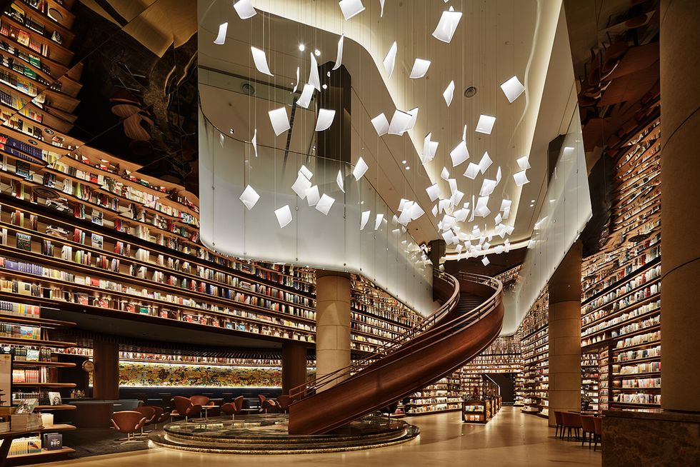 Японский архитектор Томоко Икегай (Tomoko Ikegai) и основательница студии Ikg Inc., спроектировала флагманский книжный магазин YJY Maike Centre в китайском городе Сиане. Двухэтажное пространство площадью 4500 кв.м., от пола до потолка заполненное книгами, выглядит как насмешка для теми, кто решил, что у печати нет будущего. Концепция интерьера заключалась в объединении библиотеки и галереи, где посетители со всего мира могут насладиться чтением и искусством и обмениваться творческими идеями друг с другом.