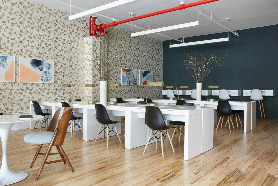 В прошлом году Леандра обратилась к Хлое Уорнер (Chloe Warner) из Decorist, чтобы провести масштабное обновление офиса для команды в Нью-Йорке. Вместе они превратили пространство в комфортный опен-спейс с конференц-залом и гардеробной.
