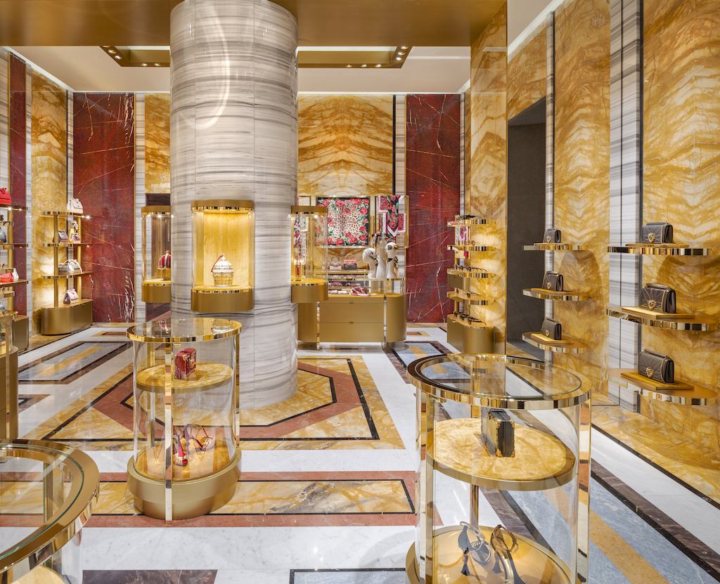 Новый бутик Dolce&Gabbana расположился прямо у подножия грандиозной Испанской лестницы на площади Пьяцца ди Спанья и занял два этажа общей площадью 800 кв. м. Дизайн интерьеров, созданный студией Carbondale, вдохновлен эпохой итальянского барокко и богатыми традициями римской культуры.