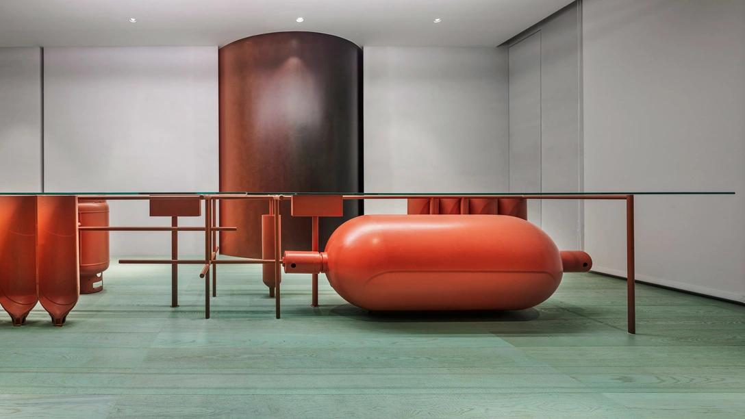 «Стальные цилиндры, которые тут можно увидеть везде, как бы постоянно напоминают нам о бесцветном газе, который является главным „товаром“, с которым работают сотрудники фирмы», — говорят дизайнеры.
