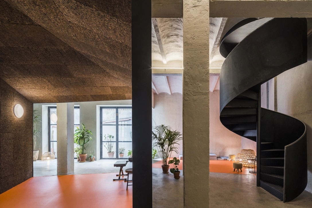 Yoglar — это новая музыкальная школа, расположенная в жилом районе в испанском городе Бургосе. Она занимает гараж на цокольном этаже дома, построенного в 1947 году, и пристройку с антресолью, которая была добавлена в 1952 году, чтобы увеличить пространство для хранения вещей. Это здание с колоннами и бетонным потолком с цилиндрическими сводами находится на месте бывшего внутреннего двора. Вместо того, чтобы демонтировать эту «неорганизованную» конструкцию, местный архитектор Энрике Херес (Enrique Jerez) и дизайнер Бланка Леаль (Blanca Leal) решили оставить ее практически нетронутой.
